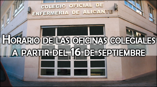 Horario de las oficinas colegiales a partir del 16 de septiembre