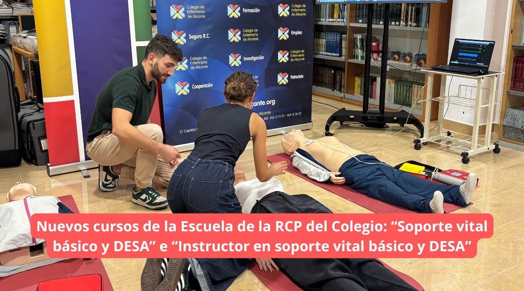 Nuevos cursos de la Escuela de la RCP del Colegio de Enfermería de Alicante: "Soporte vital básico y DESA" e "Instructor en soporte vital básico y DESA"